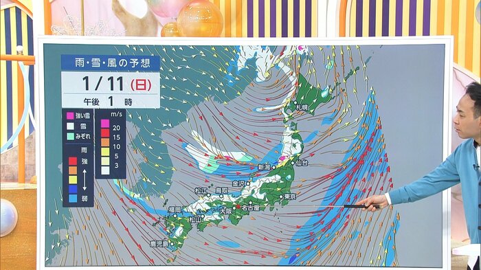 特に15m/sを超えるような新潟や北陸の日本海側、九州の海沿いは大きく交通に影響してくる可能性ありますので、特に11日日曜日から成人の日(12日)は徐々に収まってはくるんですけど、午前中は前日までの影響でかなり強い風で道路が通行止めになったり、場合によっては立ち往生が起こる可能性があります。