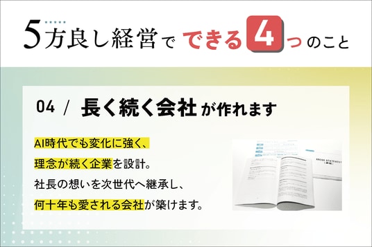 5方良し経営は、社長自身の“判断を揃える”ための経営原理です。