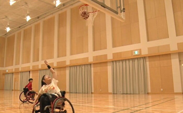 気仙沼市内の公民館。そこではボッチャを楽しむ高齢者や、車いすバスケに興じる健常者の小学生たちの姿がある。障がいの有無や年齢を超えてスポーツに親しむこの場所で、小野寺凛さんは2024年の秋から車いすバスケを始めた。