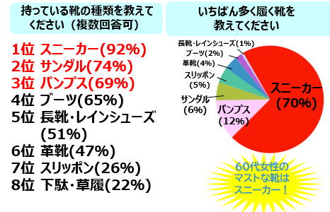 ★主役は“スニーカー”。所有率92%、使用率70%と60代女性のマストアイテムに