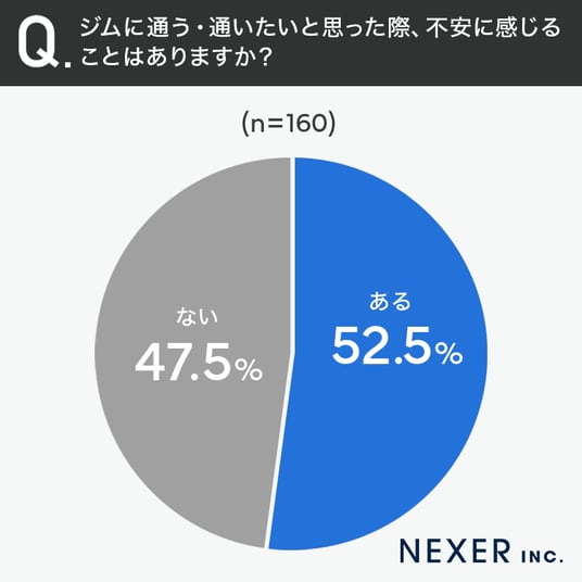■52.5%が、ジムに通う際「不安を感じることがある」と回答