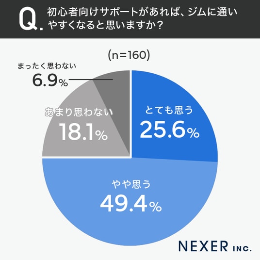 続いて、初心者向けサポートがあれば、ジムに通いやすくなると思うかを調査しました。