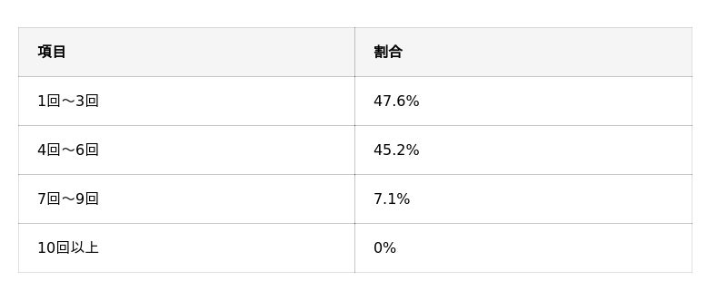 - 施術回数は「1回~3回」(47.6%)または「4回~6回」(45.2%)が大半