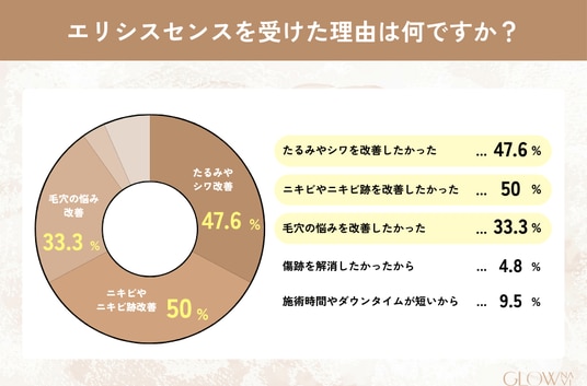 エリシスセンスを受けた理由として最も多かったのは「ニキビやニキビ跡を改善したかったから」(50.0%)でした。