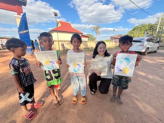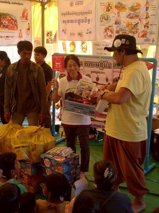 特定非営利活動法人なかよし学園プロジェクトは、柏市内の小中学校(柏市立富勢東小学校・柏市立名戸ヶ谷小学校・柏市立柏の葉中学校)の児童生徒が「世界とつながる学び」探究の中で制作・準備した教材や物資を、2025年末にカンボジア(シェムリアップ州等)の避難民支援(教育・食料支援)で活用しました。糸電話や手作り玩具、地域ブランド米、クメール語学習教材など、“日本の教室で生まれた学び”が、現地の子どもたちの学びと安心につながっています。
