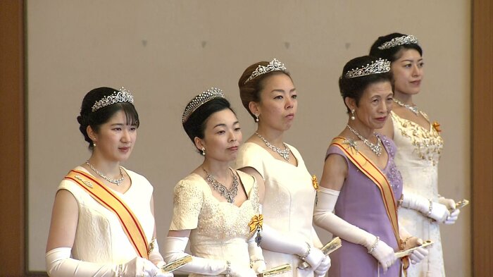 ローブデコルテの正装に、ティアラを着用して臨まれた女性皇族方。