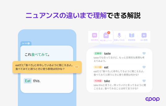 「英語学習では『話す量』ばかりが注目されがちですが、実際には会話の土台となる単語力が欠かせません。 Epopは、無理なく続けられる学習を通じて、日本の英語学習者が“話せる実感”を得られる環境を提供していきたいと考えています」。