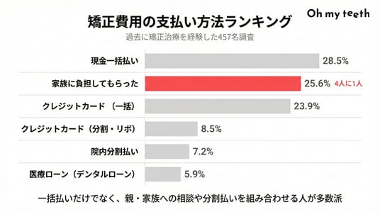 ・【2025年の歯列矯正の支払方法調査】4人に1人は親・家族が費用を負担|Oh my teethニュースページ