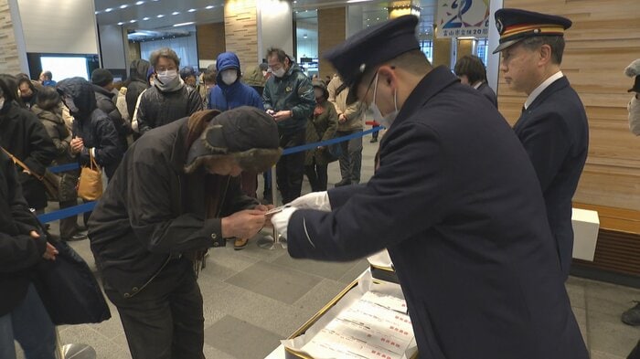 このうち富山駅には、13日朝に受験生やその家族など130人ほどが長い列を作り、合格祈願のお守り「すべらサンド」を受け取っていました。
