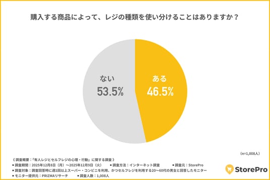 「購入する商品によってレジの種類を使い分けることはあるか」について尋ねたところ、以下のような回答になりました。