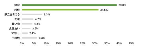 ● 主婦が最も負担だと感じる家事は「掃除(39.0%)」、次いで「料理(31.5%)」という結果に