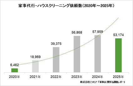 家事代行・ハウスクリーニングの年間依頼数は5年で8.2倍増加 年末ピーク後の今がねらい目!12月の半額で依頼できるケースも ~1・2月に試したい“お得”な依頼テクニックについて解説~