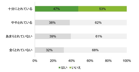 既婚女性261名に、休息に関する調査をおこないました。結果、「休む時間を十分にとれている」と回答した方は22.2%にとどまりました。「ややとれている(39.5%)」と回答した方を含むと、全体の6割は休む時間がとれているものの、十分とは言えないと感じている主婦も多い実態が明らかになりました。