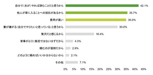 また、全体の13.4%が「妻に休んでもらうために、家事代行・ハウスクリーニングを利用した経験がある」と回答。一部の家庭の中では代行サービスの活用が進んでいる一方、「自分で(夫が)やれば済むことだと思う」といった回答も多く、妻の悩みとのギャップが見られました。