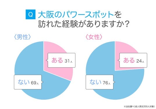 本調査では、「大阪のパワースポットを訪れた経験の有無」「訪れる目的・理由」「印象に残ったスポットと体験談」を聴取しています。