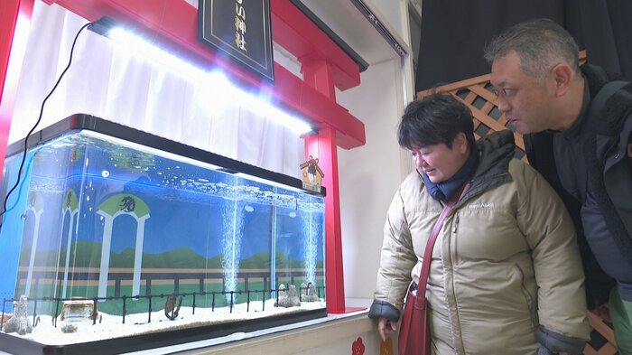 来館客からは「顔が長くてウマにも見えますね。かわいらしい」との声も聞かれた。このようなユニークな展示にも定評があり、魚津水族館では先日の三連休も家族連れなどでにぎわっていた。
