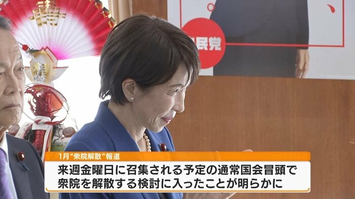 高市早苗首相が、1月23日召集予定の通常国会冒頭で、衆議院を解散するとの見方が出てきました。