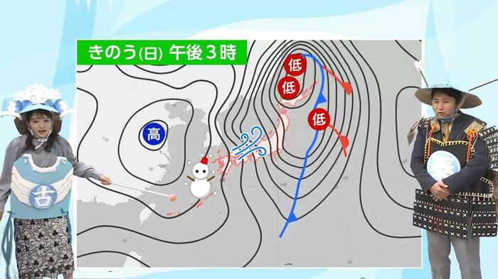 古山予報士は「南国宮崎を雪国にしてやったぞ」と冬将軍になりきって、この冷え込みが「冬将軍の功績」であることを強調しました。