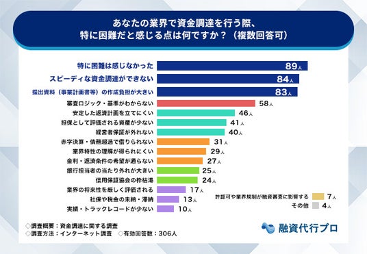 株式会社融資代行プロ(本社:東京都港区、代表取締役:岡島光太郎)は、直近3年以内に資金調達を行った全国の経営者306名を対象に実施した「資金調達に関する調査」および、日々の融資支援の現場で得られた知見をもとに、中小企業経営者が直面する資金調達の課題を整理しました。