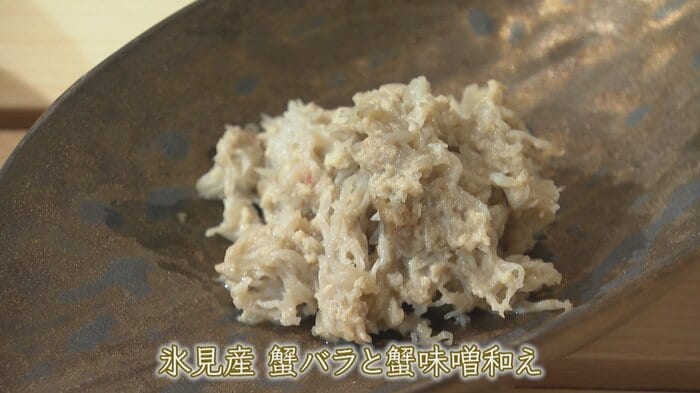 蟹バラと蟹味噌を和えたおにぎりは、濃厚なカニの味と味噌の旨味が感じられた。