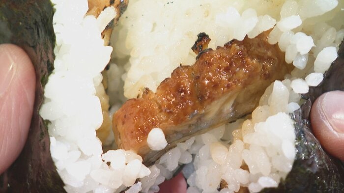 さらに特別なおにぎりとして、国産の山田うなぎを使った一品もある。店長自らが炙ったうなぎは、「ふっくらとした食感と、炭の香りもすごい強くて口の中で溶けるような食感」が特徴だという。鰻の身はふっくらして、皮目が焙ってあるので香ばしい。