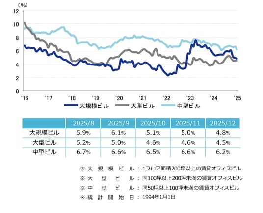 <空室率の推移(6大都市 大規模ビル)>