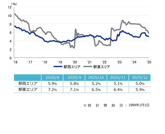 空室率 4ヵ月連続の低下 「駅東」は0.5ポイントの大幅な低下