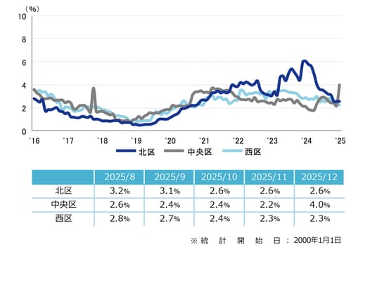 空室率 6ヵ月ぶりで上昇 「中央区」は1.8ポイントの大幅な上昇