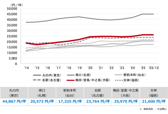 大阪市 大規模ビル 募集賃料&募集面積