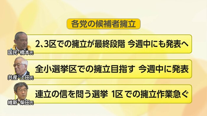 国民民主党県連の橋本雅雄幹事長は「2区3区での候補者擁立が最終段階であるとし、今週中にも発表したい」としています。