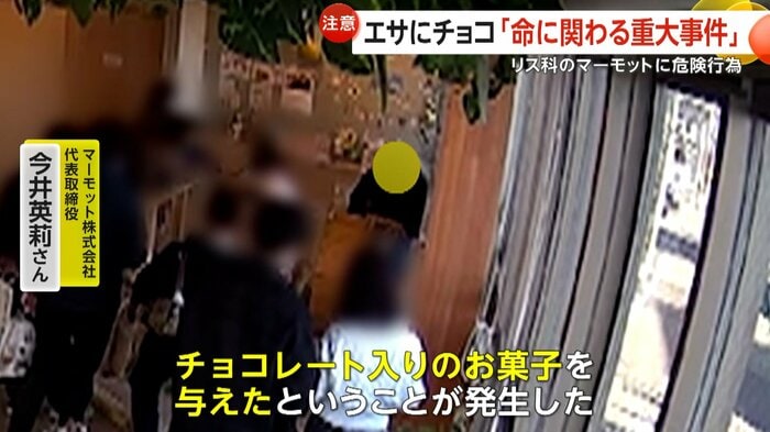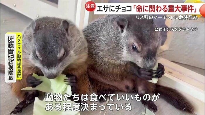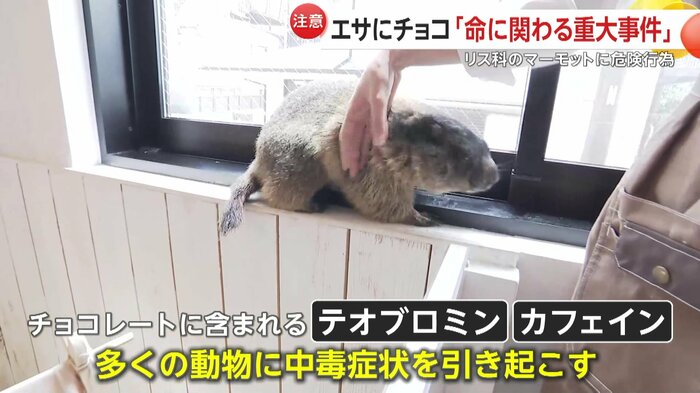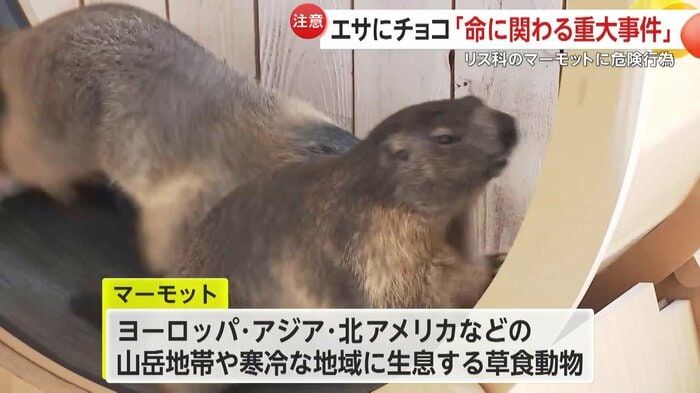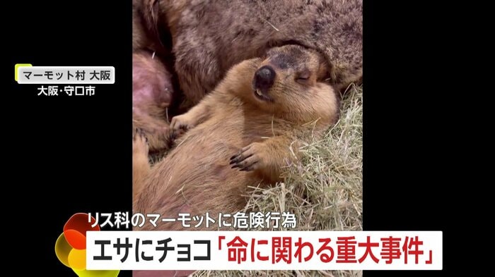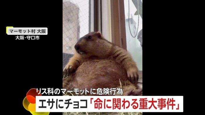 大阪の「マーモット村 大阪」で、来店した男性が動物に有害なチョコレート入り菓子を与える事件が起きた。男性はキャベツに菓子を隠して与えたとみられ、死に至る危険もあるという。