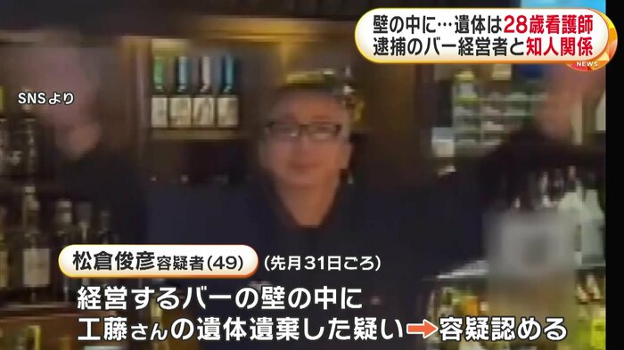 この事件は2025年12月31日ごろ、飲食店経営・松倉俊彦容疑者(49)が、経営するバーの壁の中に工藤さんの遺体を遺棄したとして、逮捕されたもので、松倉容疑者は容疑を認めている。