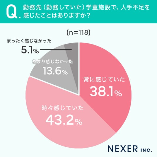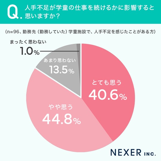 学童施設で働く(または働いていた)方に、勤務先で人手不足を感じたことがあるかを調査しました。