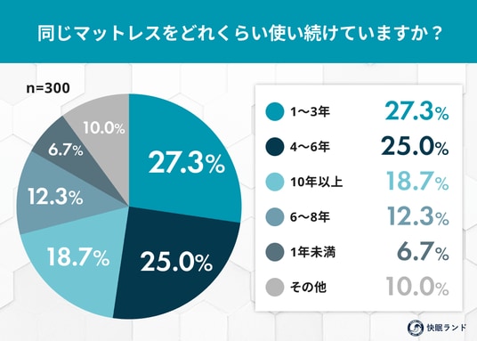 - 3割以上の人が6年以上同じマットレスを使い続けている