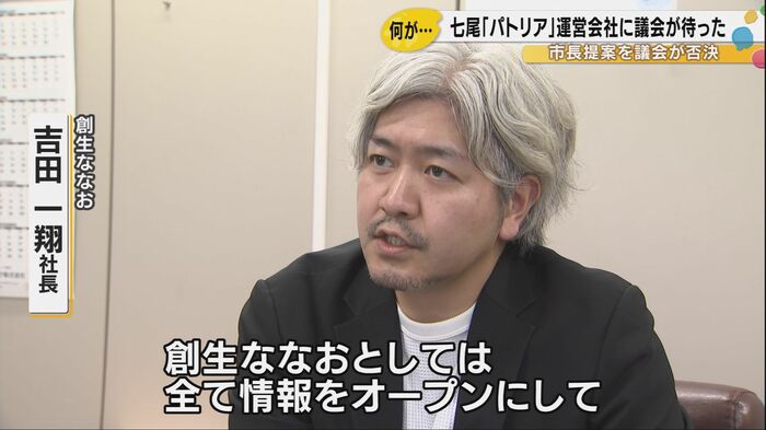 これについて創生ななおの吉田一翔社長は「創生ななおとしては全て情報をオープンにして、執行部と連携を取っておりますので、何か不透明な部分があるとか、情報を隠しているという事実は一切ございません」と話し、今後も管理を続けていくことに意欲を示した。市の担当者は議会に対する説明が十分ではなかった部分があるとして、議会側と対応を調整中だという。1月13日の本会議ではパトリアの件は一切触れられず、市は2月の議会で改めて議案を提出する見込みで、その内容と議会側の対応が注目される。