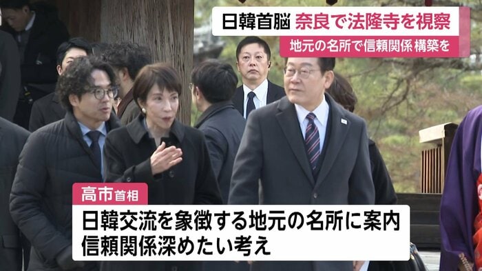 高市首相は、来日している韓国の李在明(イ・ジェミョン)大統領とともに、自身の地元・奈良県の世界遺産・法隆寺を視察した。