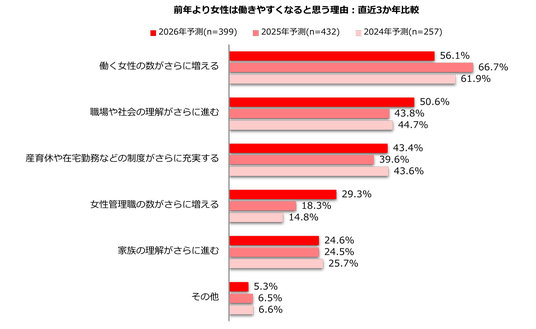 5.2026年は「女性が働きやすくなると思う」62.7%/3か年比較