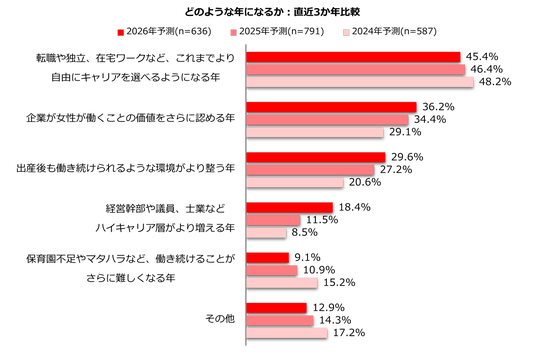 4.2026年は「自由にキャリアを選べるようになる」45.4%/3か年比較