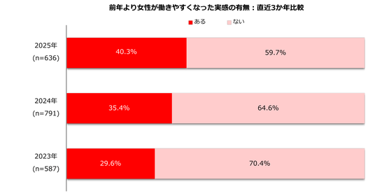 1.2025年は前年より女性が働きやすくなった実感「ある」40.3%/3か年比較