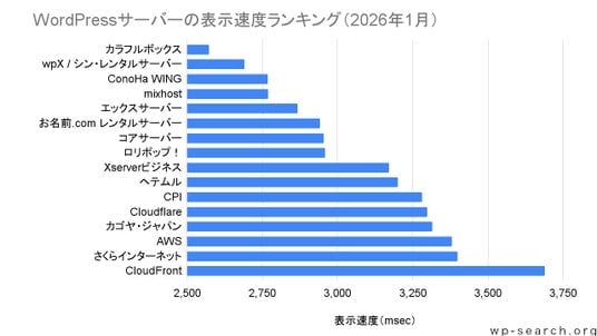 WP-Search(URL:https://wp-search.org/ja/)は、2026年1月時点の市場シェアと表示速度ランキングの調査結果を発表しました。
