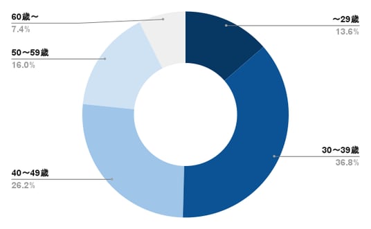 30代までの人材が約半数と若手~ミドル層が充実しており、即戦力としてご活躍いただける経験者人材も幅広くご提案が可能です。