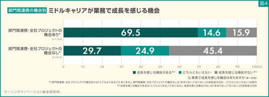 4.部門間連携の機会があるミドルキャリア、約7割が「成長を感じる機会がある」。部門間連携の機会がない群の2倍以上