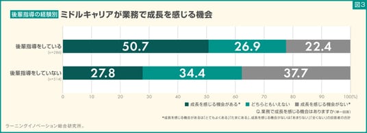 後輩指導をしているミドルキャリアのほうが、成長を感じる機会がある傾向が見られました(図3)。