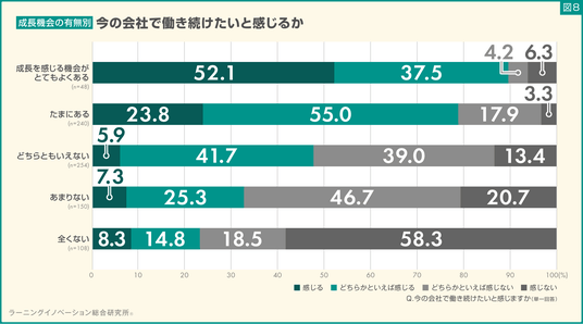 最後に、成長を感じる機会の有無と、今の会社での勤続意向の関係を見ていきます。