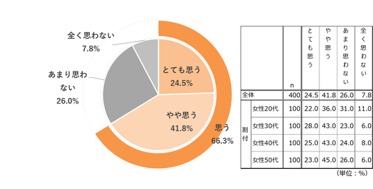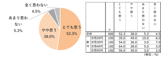 「年齢とともに美容の悩みが変化すると思いますか?」という質問には、「とても思う」52.3%、「やや思う」38.0%で、合計90.3%が“悩みの変化”を実感している結果となりました。