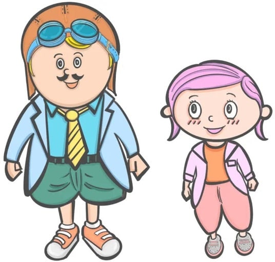 (左:アンチ研究家の「ハーフパンツ博士」、右:助手の「ドジっこポジ子ちゃん」)