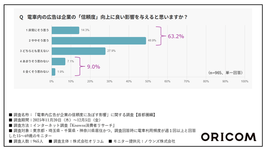 「電車内広告が企業の信頼度向上に良い影響を与えると思う」は63.2%