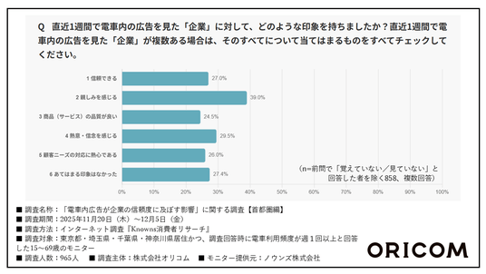 本内容を引用する際には以下を明記してください。「出典:株式会社オリコム『「電車内広告が企業の信頼度に及ぼす影響」に関する調査【首都圏編】』2025年11月~12月」