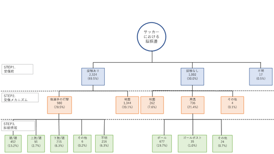 図 中高生におけるサッカー中の脳振盪受傷メカニズムの樹形図