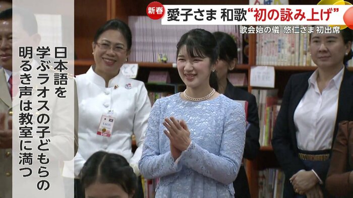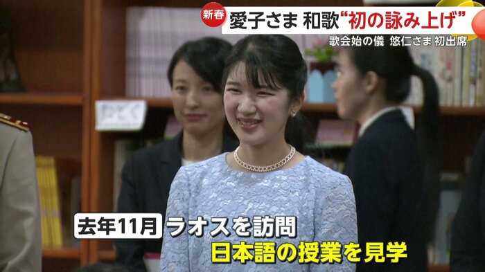 成年皇族となって以降、毎年和歌を寄せられている愛子さま。今回は代表皇族として、儀式で初めて歌が詠みあげられた。